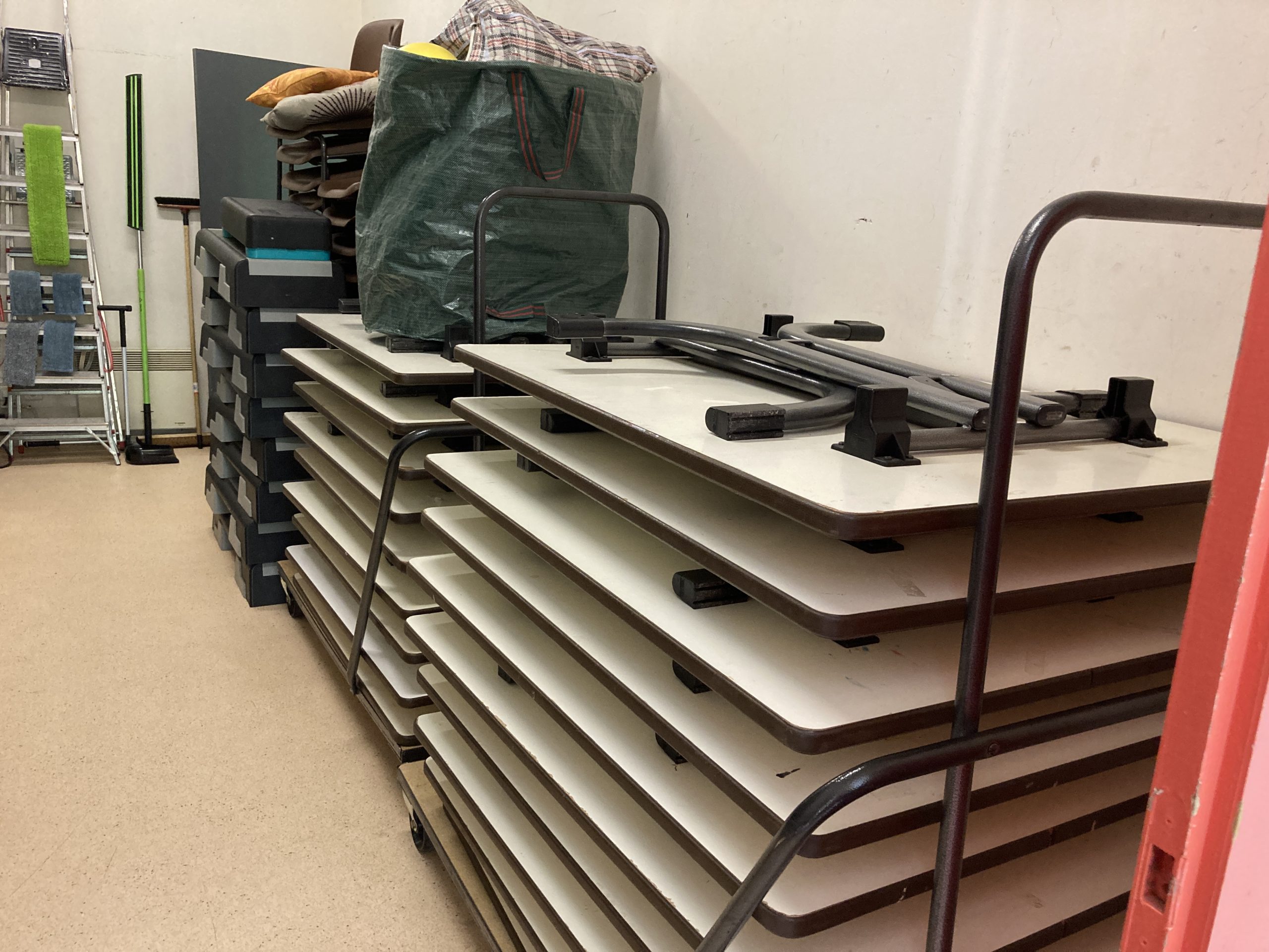 Cette salle polyvalente peut accueillir jusqu’à 80 personnes. Elle est équipée d’une cuisine contenant un four, des plaques de cuisson à gaz, un chauffe-plat, un réfrigérateur, et un lave-vaisselle. Il est également possible de louer un percolateur ainsi que la vaisselle nécessaire pour votre événement. La salle inclut également des toilettes et est meublée avec des tables et des chaises adaptées à une variété de configurations.