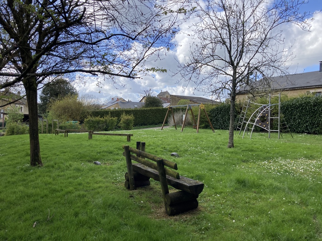 Un parking est disponible immédiatement derrière la salle, adjacent à une aire de jeu, ce qui facilite l’accès pour tous les invités.